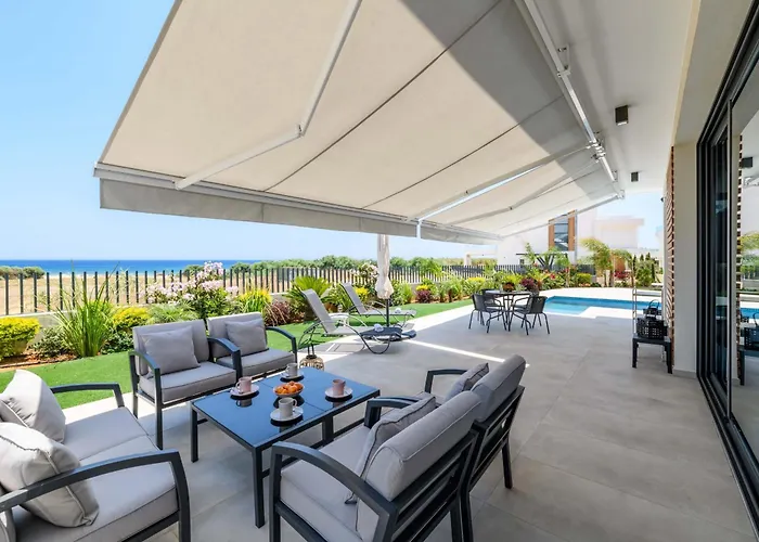 By The Beach - Emerald Seaview Villa는 Pernera 지구에 있는 Agia triada 옆에 위치한 해변에 있는 빌라입니다. 이 빌라는 3개의 침대와 주방용품, 전자레인지, 오븐이 마련된 부엌도 제공합니다.